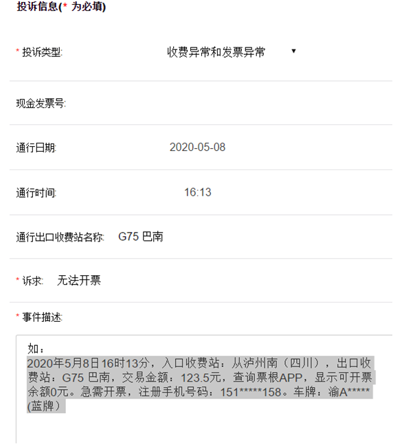 填写投诉的相关信息内容后提交,